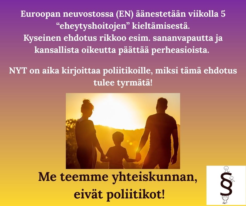 21.01.2026 – Ehdotus ”eheytyshoitojen” kieltämiseksi